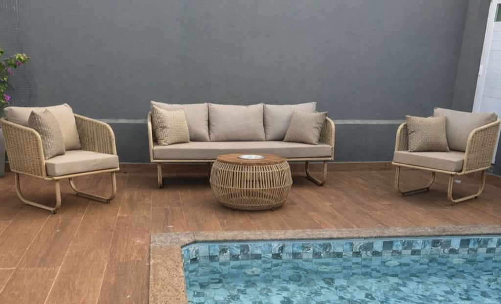 Jogo de sofá Orleans alumínio tramado em Corda náutica.